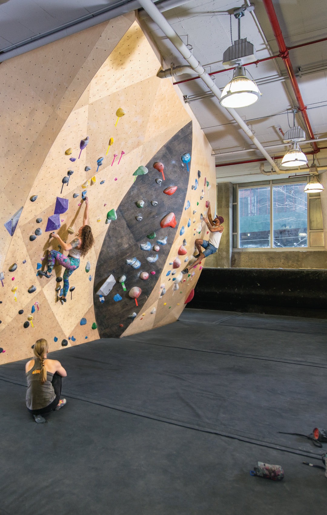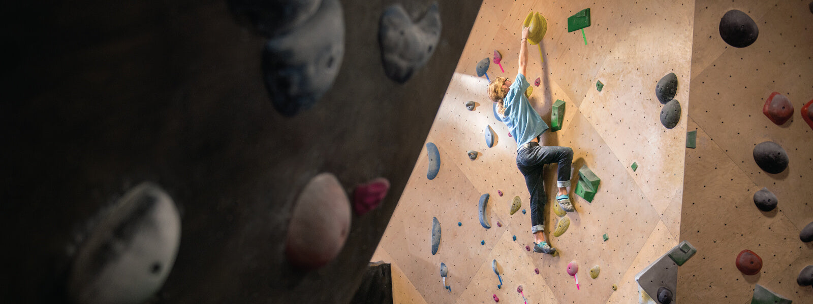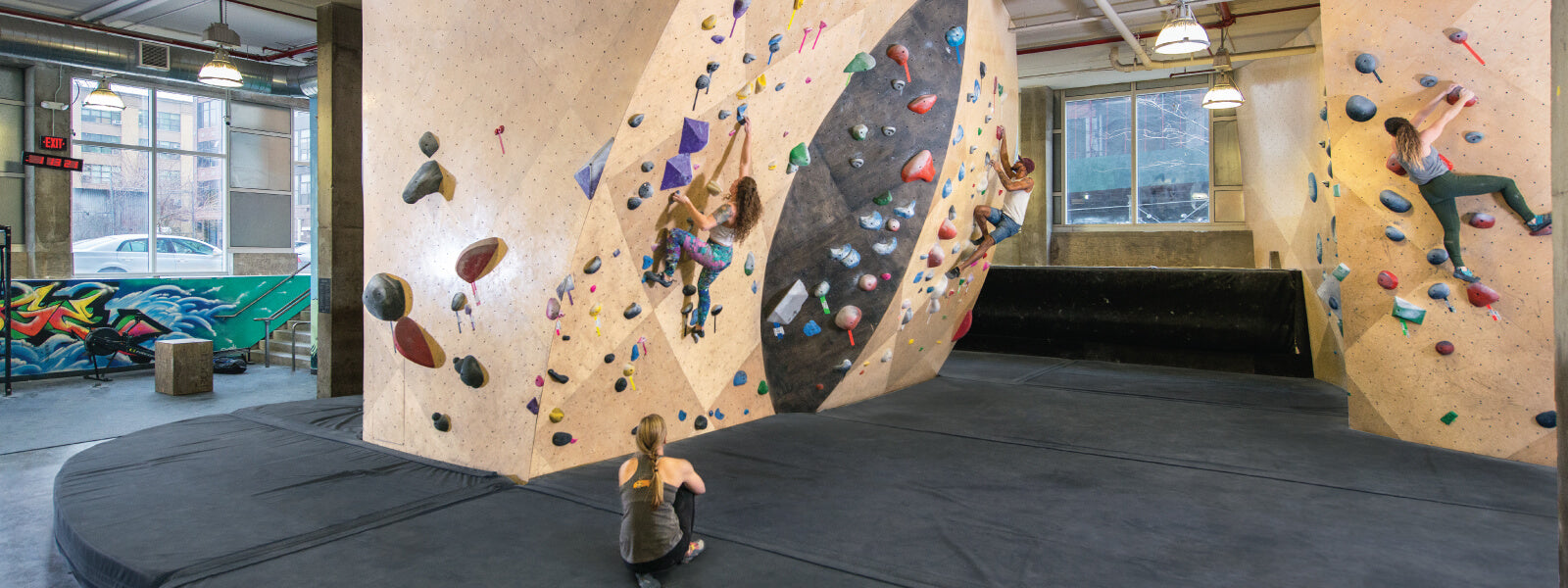 Made of baltic birch, our smooth walls allow our setting team full freedom to be intentional. With over 300 routes and boulders, we work to create unique climbs to challenge your perceived limitations, whatever grade you climb.